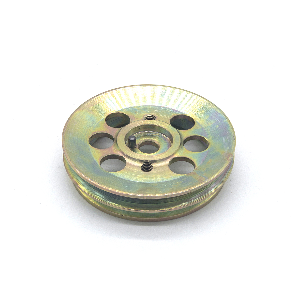 Lightweight crankshaft pulley for all configurations running a separate alternator, typically engines with a flat fan, such as the RSR Turbo, 934 and 935 models. Precision machined and yellow zinc passivated.